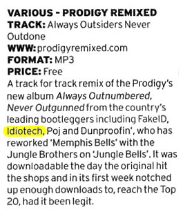 The download version, which was one of DJ Magazine's 'Top Tunes To Download' for two issues running, included my 'idiotech' remix of 'Girls' (the first single from the album, also released the same day). And Liam Howlett of The Prodigy told Xfm's Eddy Temple-Morris that this was his favourite remix from the collection.